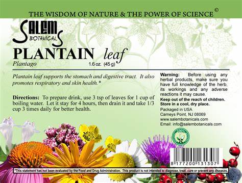 La hoja de llantén fortalece el estómago y el tracto digestivo. También promueve la salud respiratoria y cutánea. Instrucciones: Para preparar la bebida, use 3 cucharaditas de hojas por 1 taza de agua hirviendo.