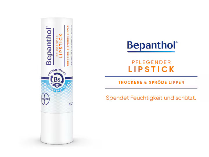 Bepanthol Nourishing Lipstick® SPF 30 provides daily lip care combined with high sun protection. Formulated with dexpanthenol (provitamin B5), it helps nourish, soothe, and support the natural regeneration of dry and sensitive lips while protecting them from harmful UVA and UVB rays. Ideal for everyday use, especially during sun exposure, outdoor activities, and in dry or windy conditions. Suitable for all skin types, including sensitive lips.