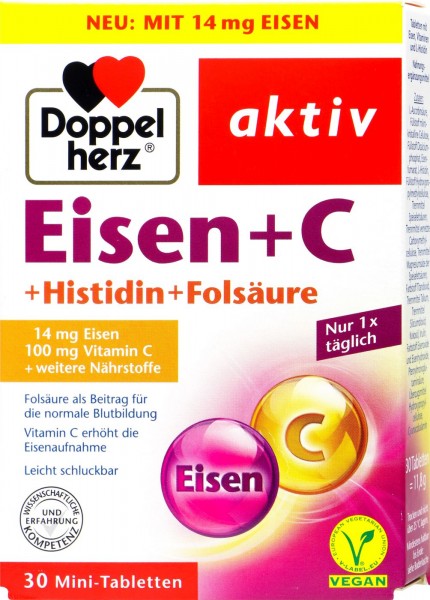 Doppelherz Iron + Vitamin C + Histidine + Folic Acid (Доппельгерц Железо + Витамин C + Гистидин + Фолиевая кислота), 30 Tablets
