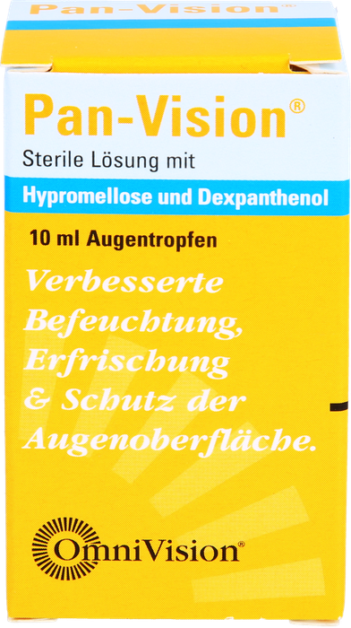 Sterile moisturizing eye drops formulated with hypromellose and dexpanthenol (provitamin B5) to relieve dryness, irritation, redness, and eye fatigue. Pan-Vision helps stabilize the tear film, supports regeneration of the ocular surface, and provides long-lasting comfort. Suitable for frequent use and compatible with contact lenses.