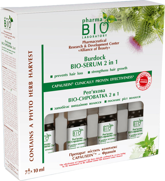 Pharma Bio Laboratory Burdock Serum 2-in-1 Against Hair Loss, 7 × 10 ml (Pharma Bio Laboratory репейная сыворотка 2-в-1 против выпадения волос, 7 × 10 мл)