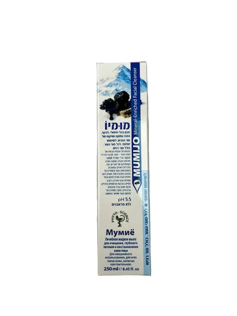 Mumijo (also known as shilajit) is a natural, mineral-rich substance traditionally valued for its revitalizing properties in both skincare and herbal use. Its inclusion in a facial cleanser helps nourish the skin while assisting in detoxification and comfort.