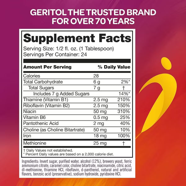 Geritol Liquid is a trusted multivitamin and iron supplement formulated to help combat fatigue and restore natural energy levels. Its fast-absorbing liquid formula delivers vital nutrients your body needs to stay active and healthy.