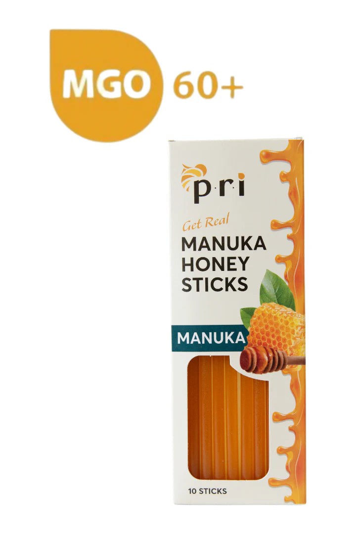 These PRI Manuka Honey Sticks contain pure MGO 60+ Manuka honey, harvested exclusively from New Zealand’s native Manuka trees, known worldwide for their unique medicinal and antimicrobial properties.