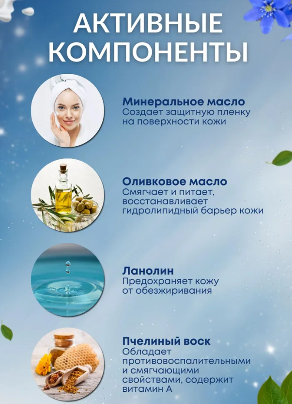 Lanolin Natural fat that prevents skin degreasing and gives softness & elasticity.